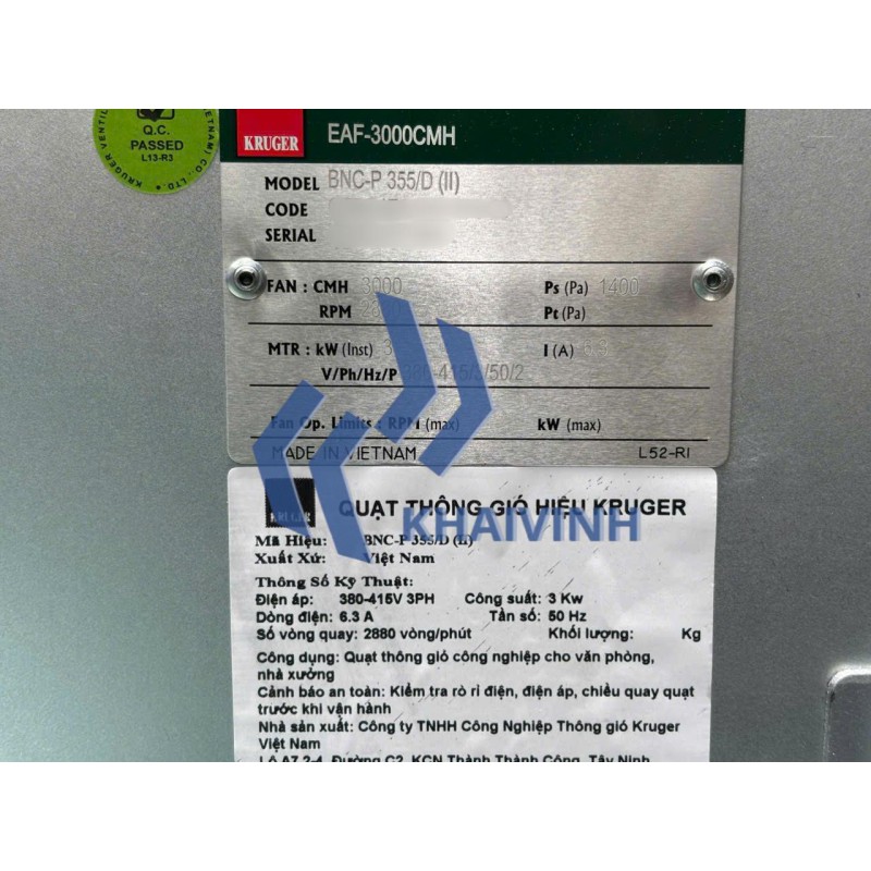 • Tất cả các quạt sau khi lắp ráp đều được cân bằng theo tiêu chuẩn ISO 1940 và AMCA 204-G2.5.